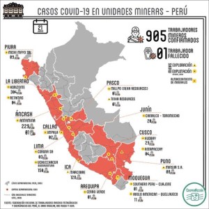 Il 24 maggio, in 24 attività minerarie di diverse regioni del Perù si erano verificati più di 800 contagi e almeno un morto fra i lavoratori47.